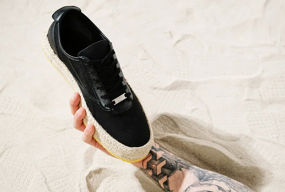 Las zapatillas de yute de la colección Arena destacan por su textura natural y su estética relajada, inspirada en el estilo mediterráneo. Un diseño que mezcla tradición y modernidad para crear sneakers únicas dentro del universo ODDA.